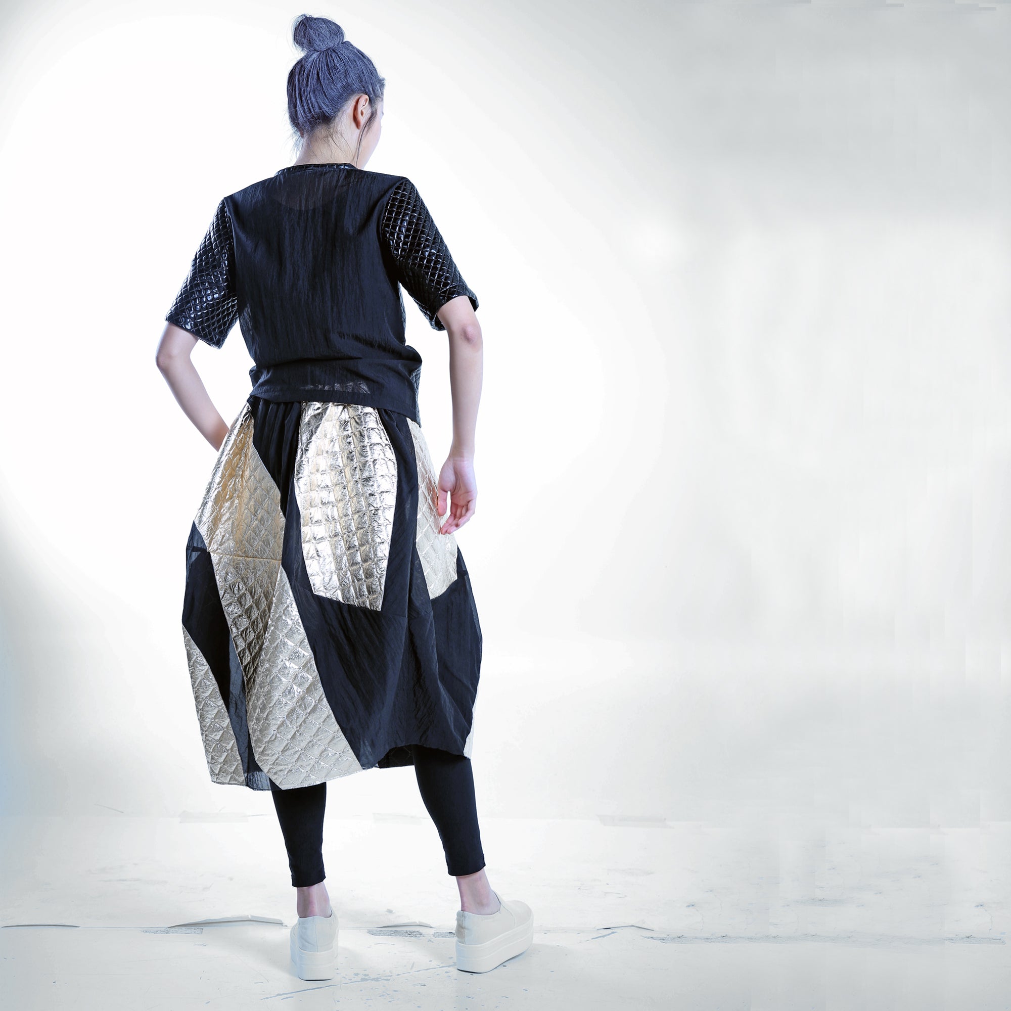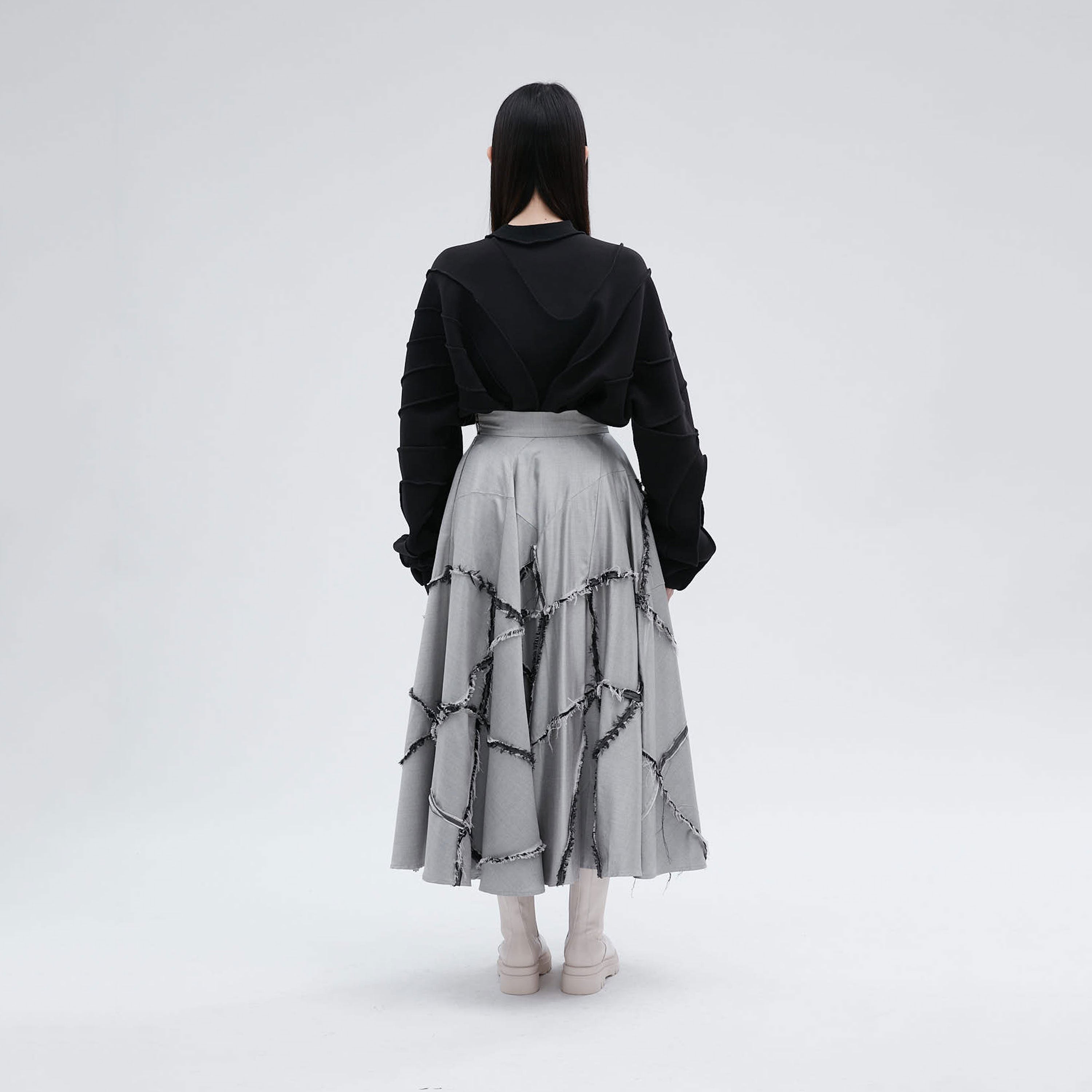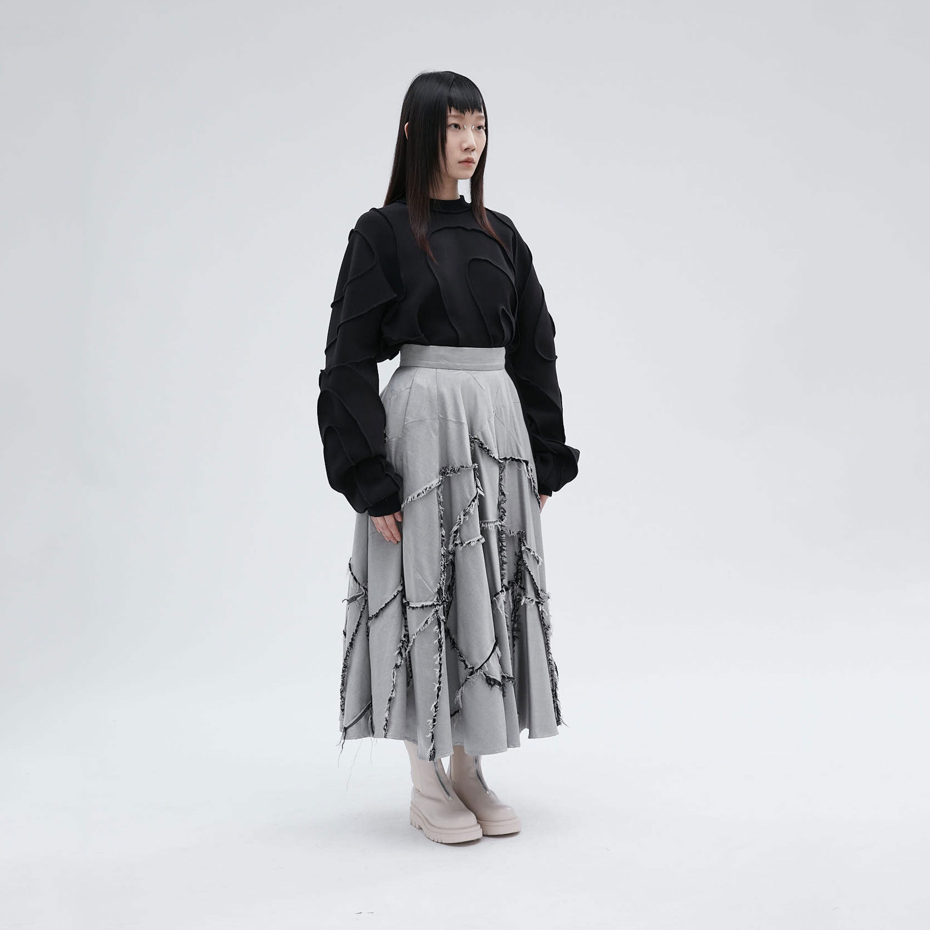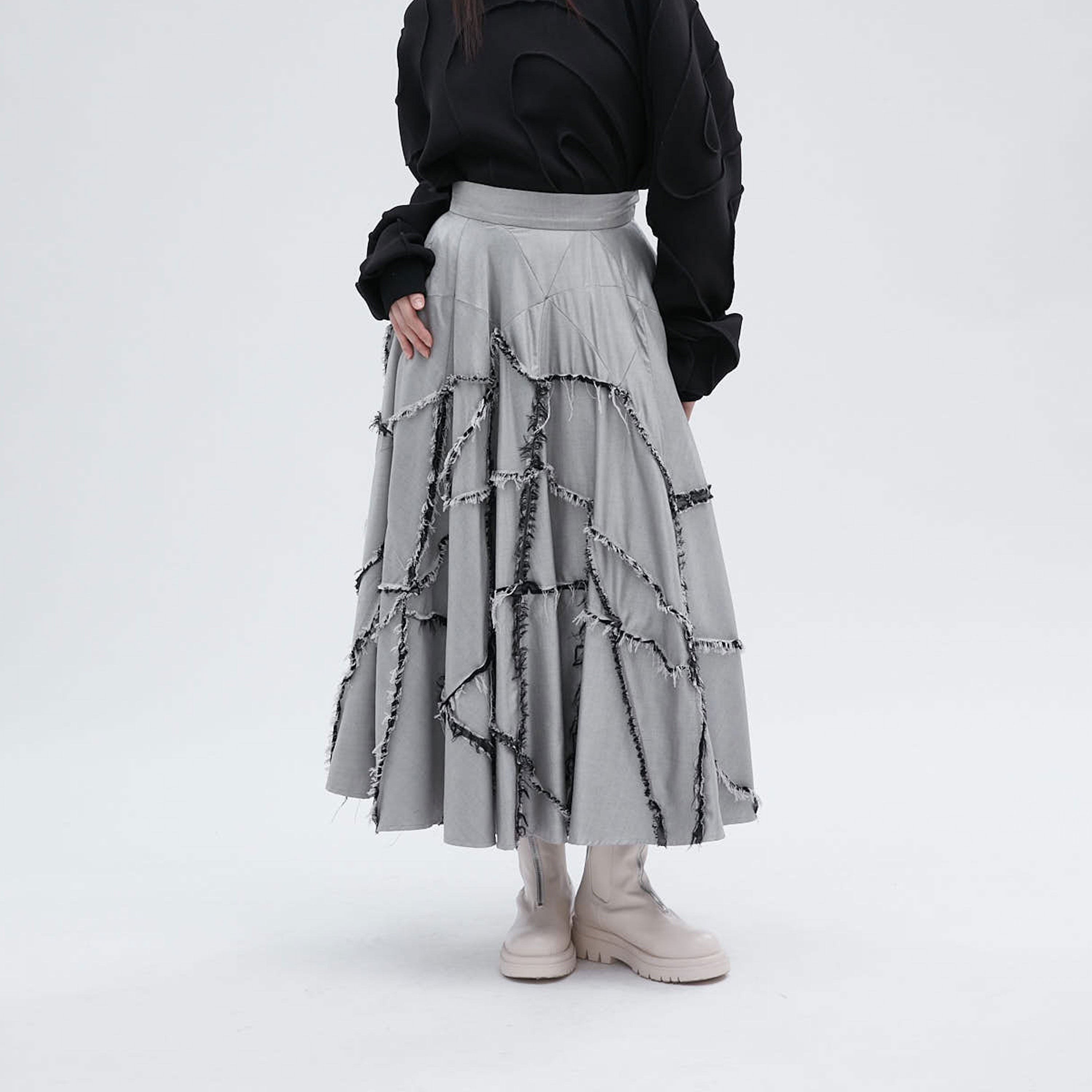 Mix Fabric Tiered Skirt
